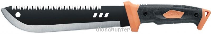 Spodná hrana čepele je hladká a horná časť tvorí pílku, čepeľ je vyrobená z nerezovej ocele 420.
